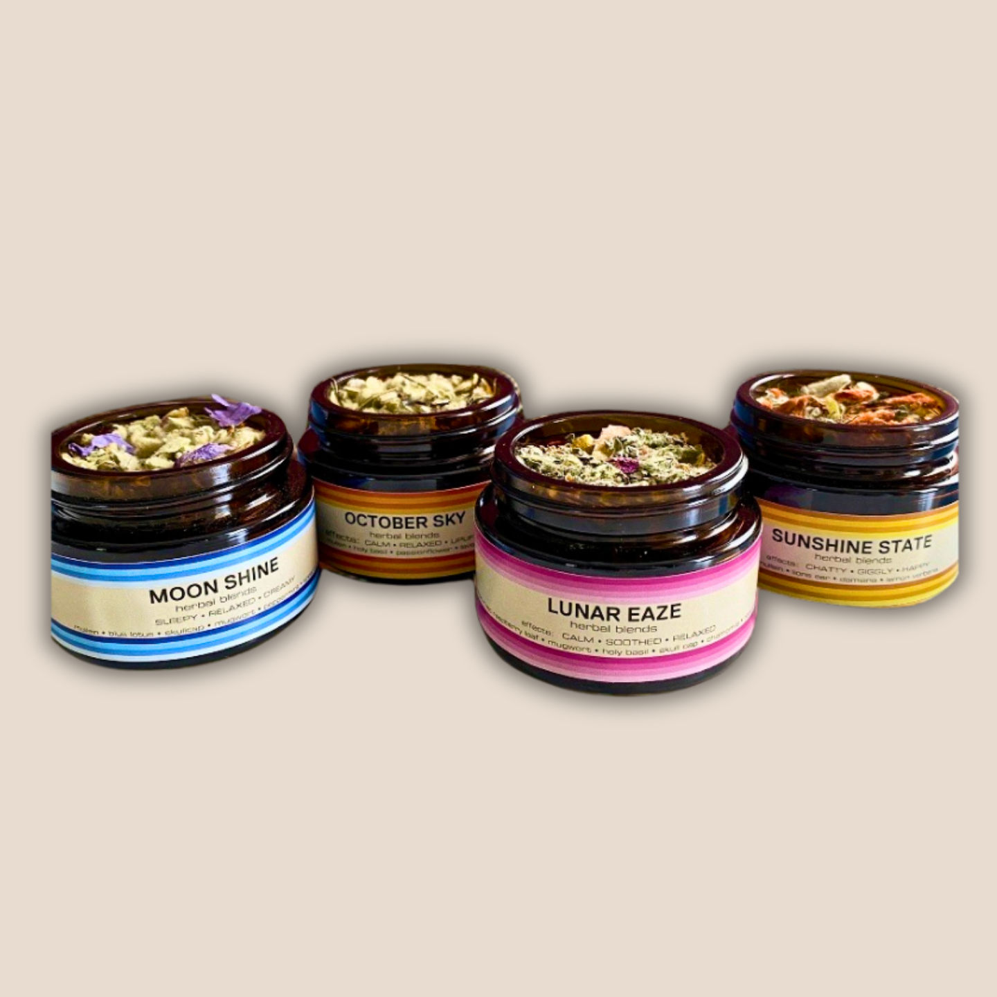 - 4 jars of loose-leaf herbal blends (3-4g each)